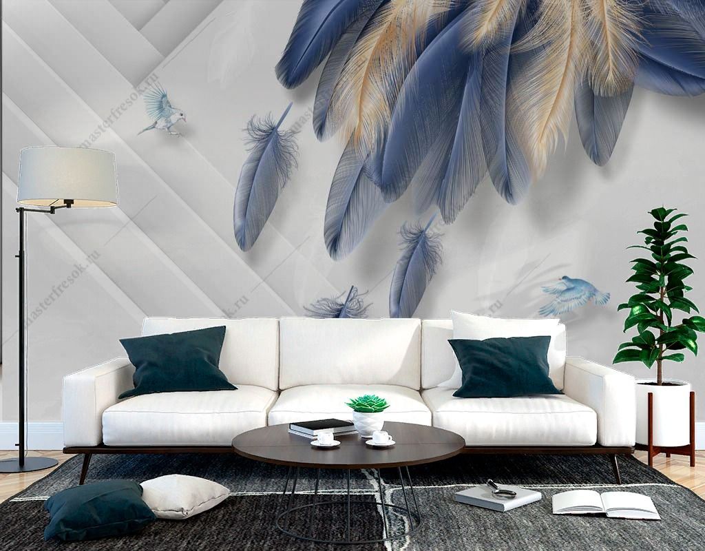 Бесшовные обои на стену: Синие перья. Артикул: 9-1668