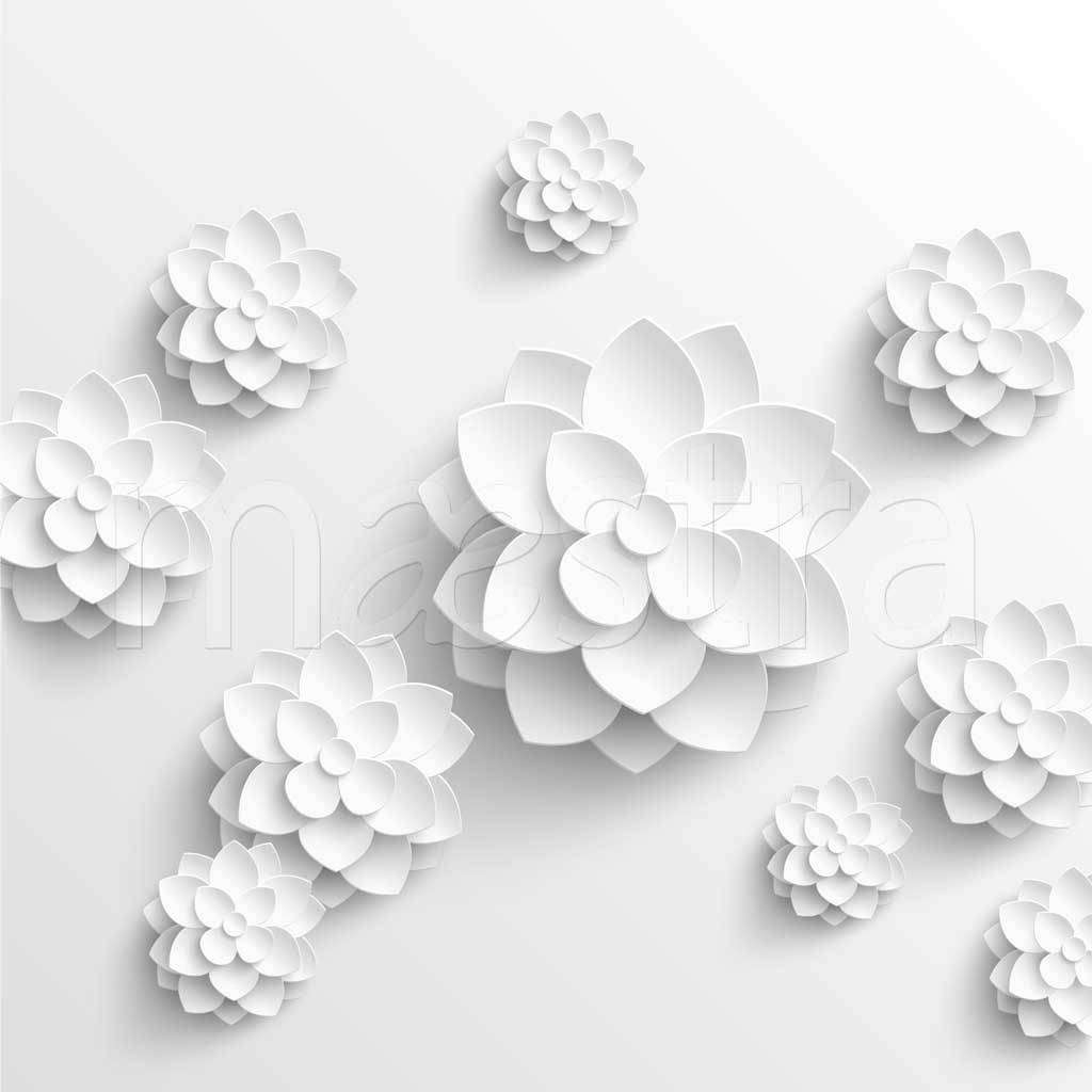 Бесшовные обои на стену: 3д объемные цветы в векторной графике. Артикул: 10-465