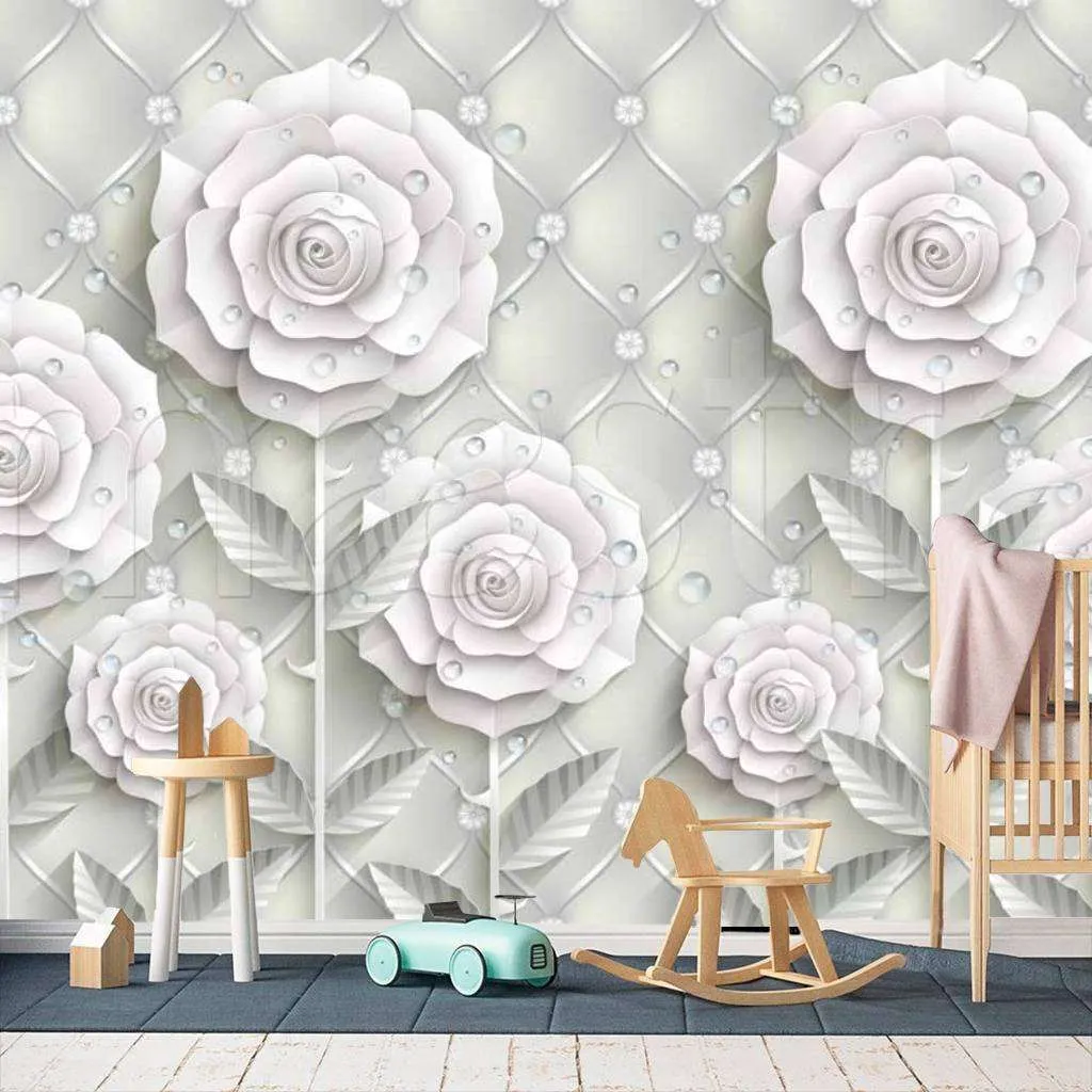 Бесшовные обои на стену: Стереоскопические светлые цветы на сером фоне. Артикул: 7-472