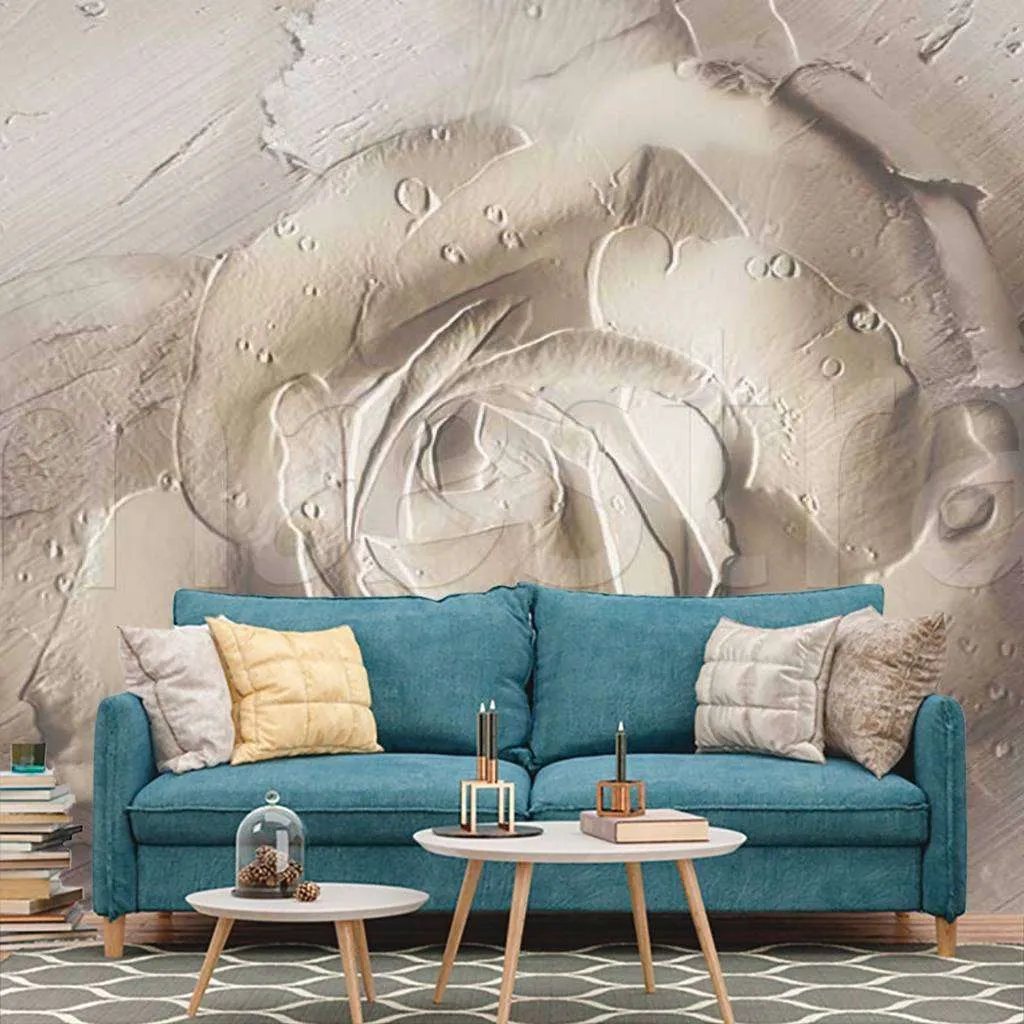 Фотообои в интерьере объемная роза с каплями росы  7-492 фото