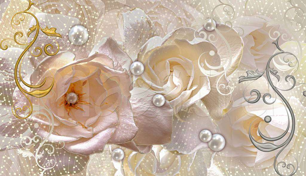 Бесшовные обои на стену: Бежевые розы. Артикул: 7-586