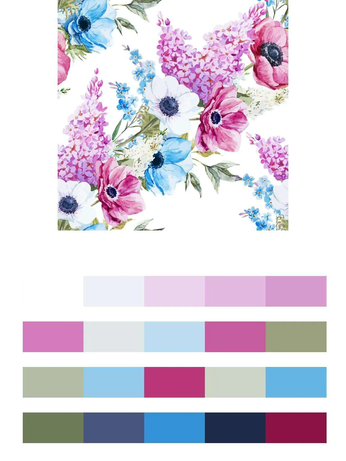 Бесшовные обои на стену: Букет розовый и голубой. Артикул: 9-089