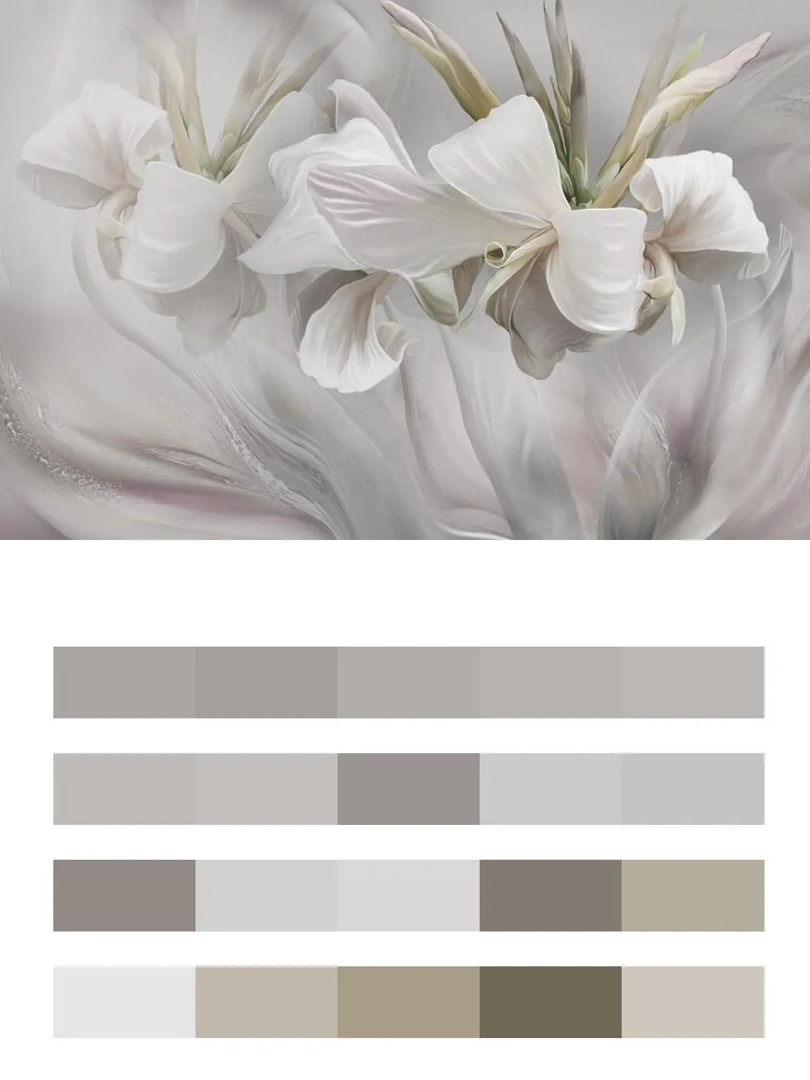 Бесшовные обои на стену: Лилии белые на сером фоне. Артикул: 13-633