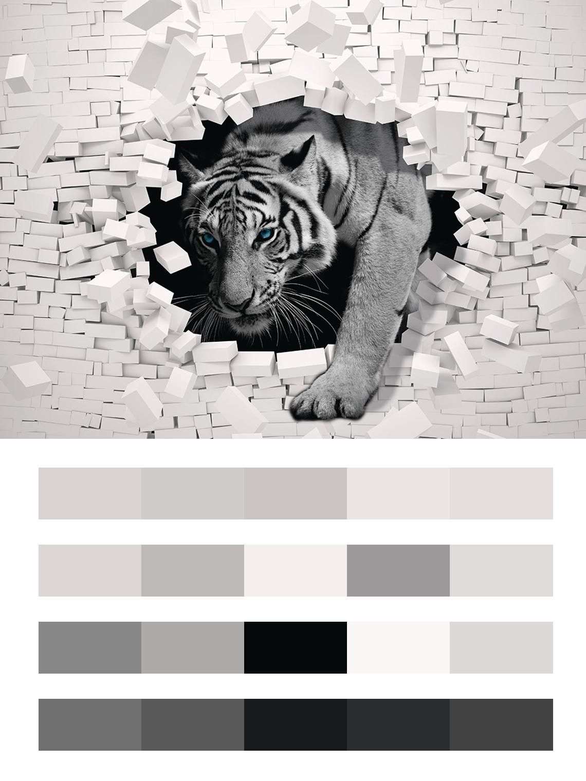 Бесшовные обои на стену: Тигр черно-белый 3D. Артикул: 10-991